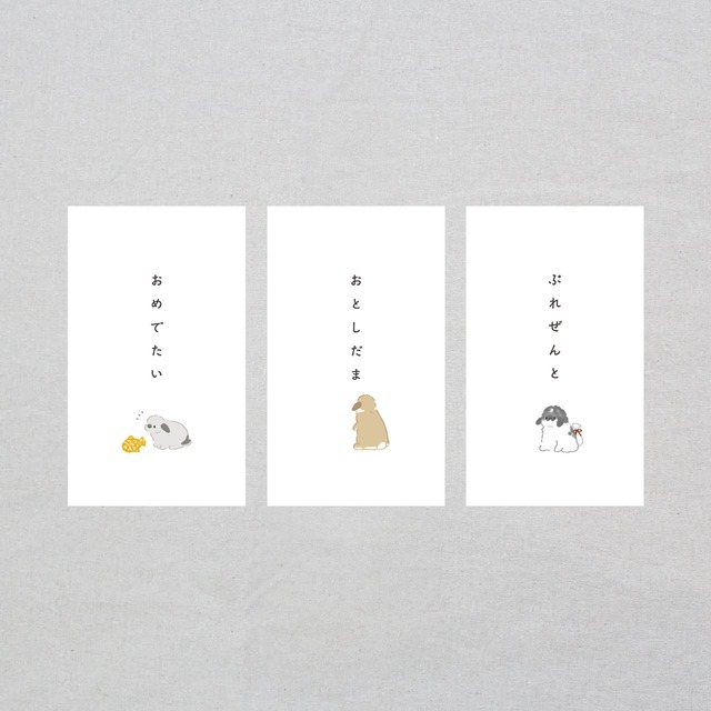 シンプルでかわいいぽち袋。 お誕生日やお年玉など、お祝いのメッセージと一緒に。 -おめでたい- うさちゃんが金色に輝く鯛を見つけたようです。 -おとしだま- なにか物欲しそうにしていたうさちゃん、おいしいりんごをもらえたようです。 -ぷれぜんと- うさちゃんがなにやらくれるみたい! 特別な時間に、ほんの少しの可愛さをお届けできますように。 厚くしっかりとした上質な和紙で作られています。 封をするシールに♪ https://mumoco.official.ec/items/108594443 https://mumoco.official.ec/items/108594456 https://mumoco.official.ec/items/121036627 ーーーーーーー グッズ詳細 ーーーーーーー ◯内容 3枚入り ◯サイズ 6.5×11cm ーーーーーーーーーーーーーーーーーーーーー 発送目安:2~4日 配送方法:ゆうパケットポスト他