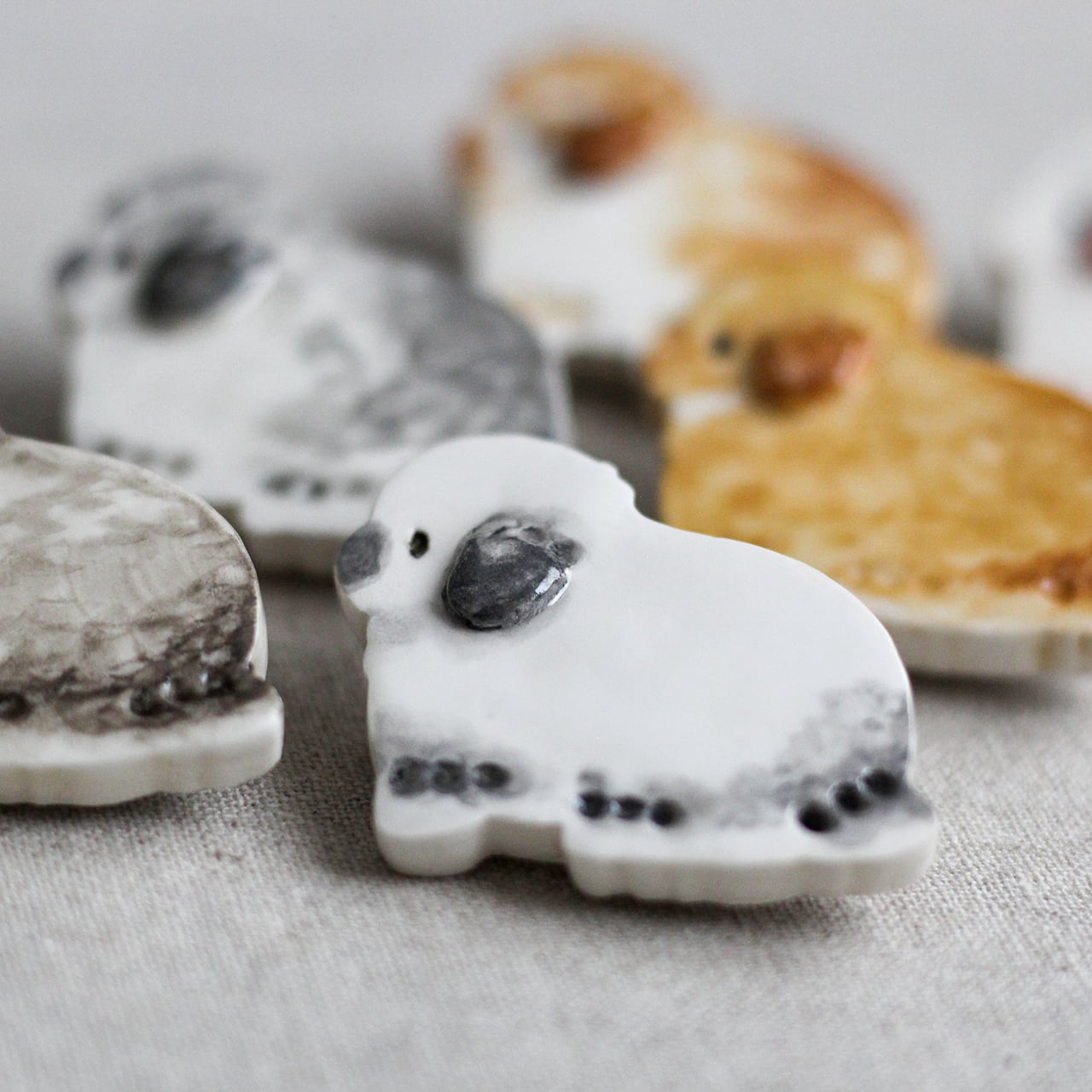 おすわりしたうさちゃんのブローチができました。 石塑粘土で形造り、水性アクリルニスで仕上げています。 軽量でしっかりしているので帽子やバッグなど、ファッションのワンポイントとしてお楽しみいただけます。 ひとつひとつ手作業で仕上げているため、毛色や表情に個体差がございます。 (写真は一例です) ーーーーーーー グッズ詳細 ーーーーーーー ◯サイズ 3.5×3.5cm以内 厚さ5mm(ピン部分を除く) ◯素材 石塑粘土 回転ブローチピン(日本製) 耐水性のあるニスで仕上げておりますが、石塑粘土自体には耐水性がございませんので水気には十分ご注意をお願いいたします。 ーーーーーーーーーーーーーーーーーーーーー 発送目安:2~4日 配送方法:ゆうパケットポスト他