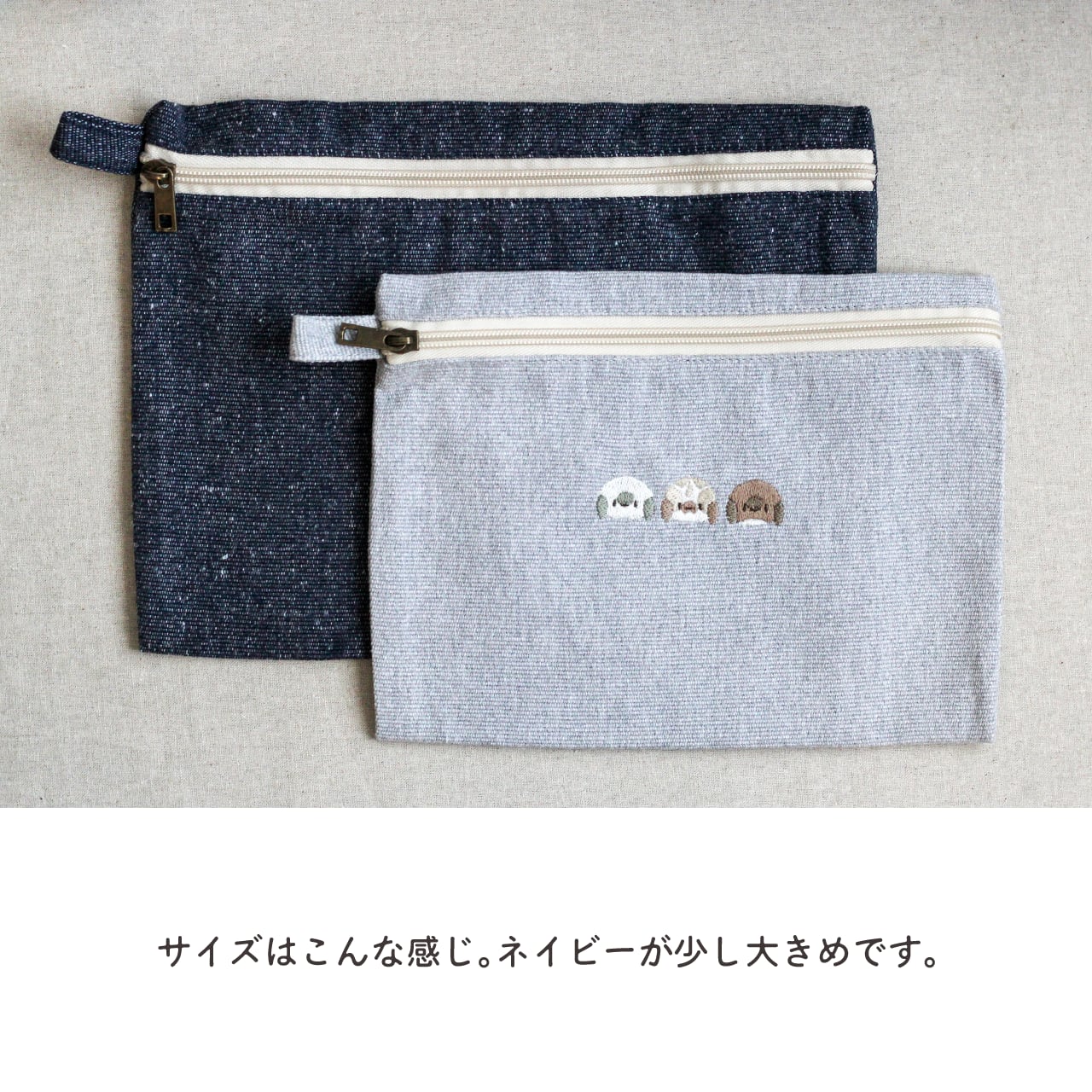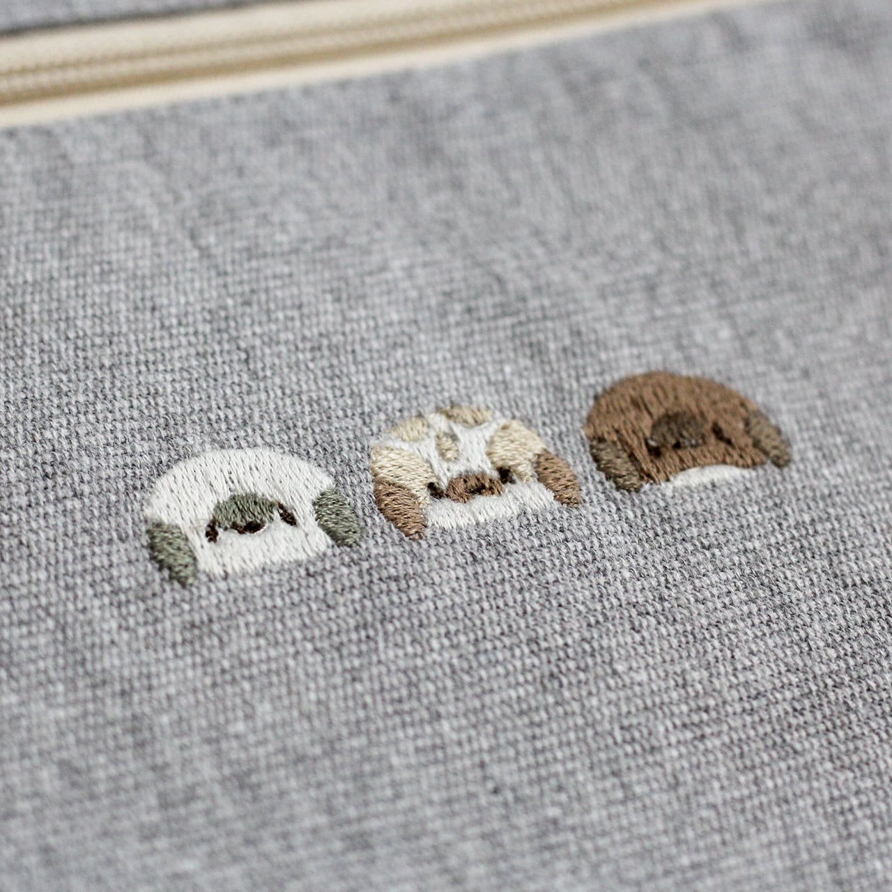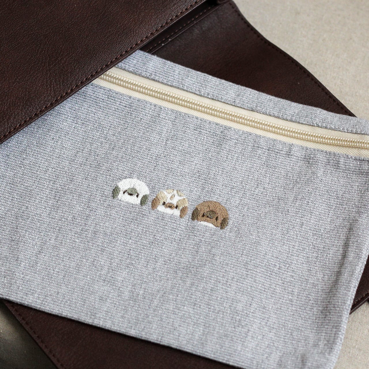 やわらかな生地に、3種のたれみみさんを刺繍したポーチができました。