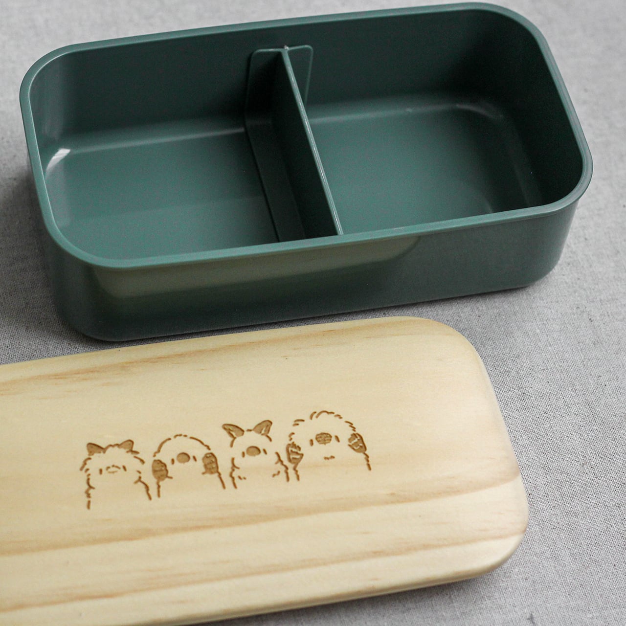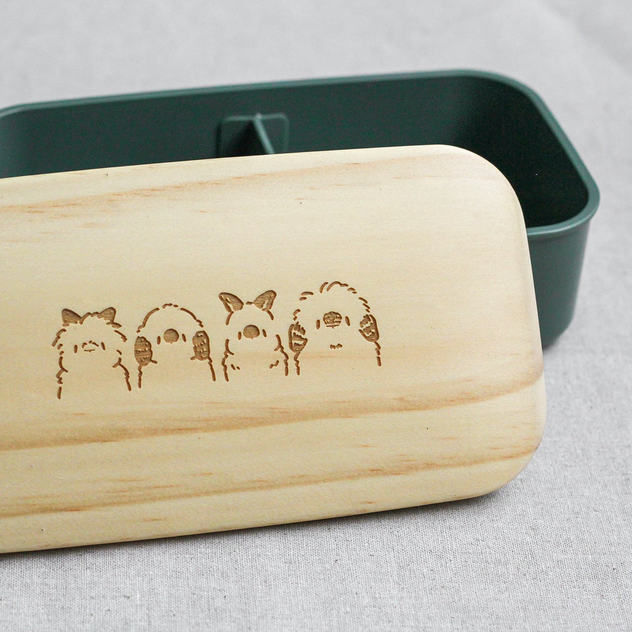 天然木の蓋には4種のうさたちが彫刻されています。
